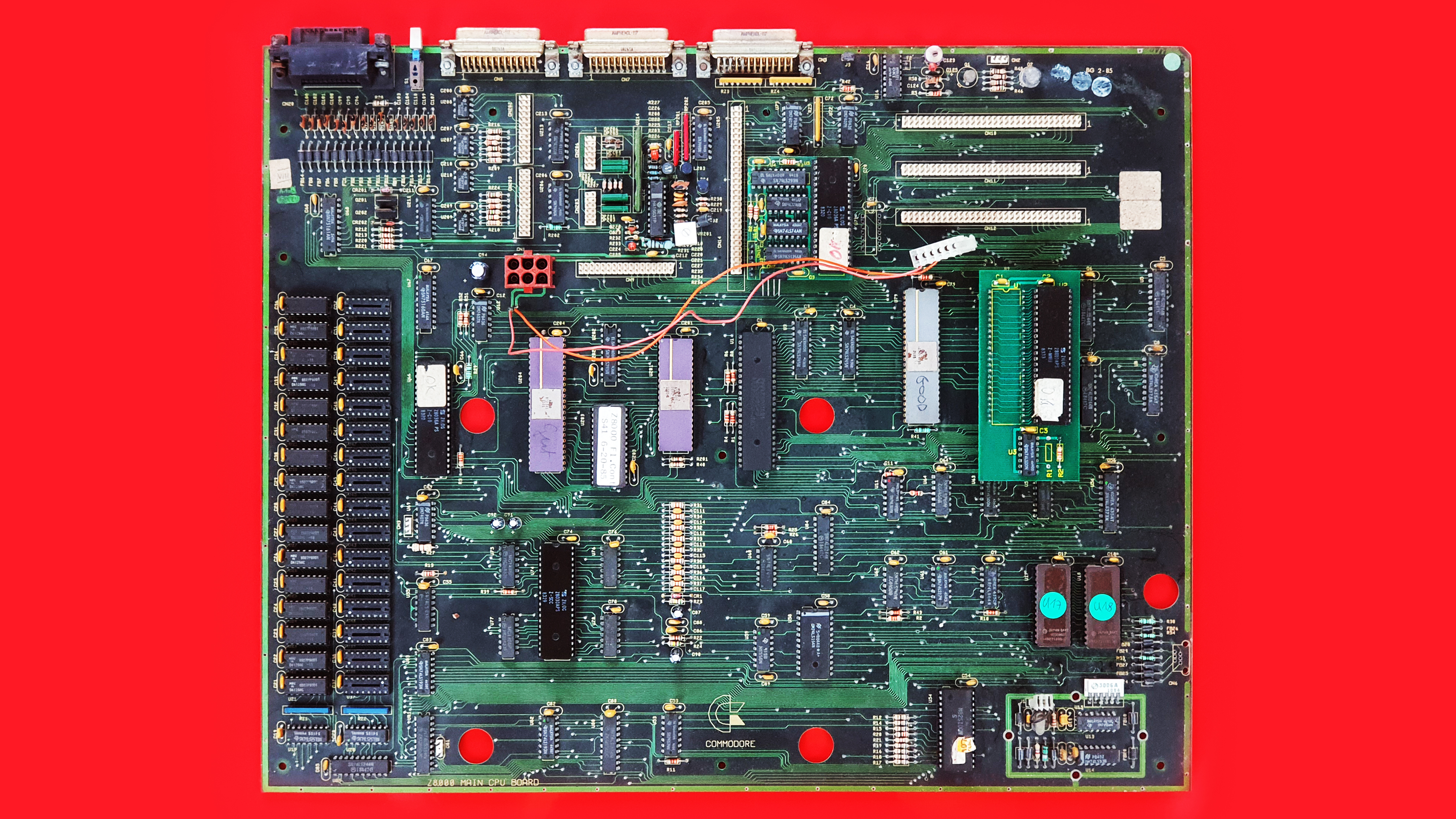 Commodore 900 / C900 / Z-8000 [Prototype] Mainboard Published by Commodore 900 / C900 / Z-8000 [Prototype] spare mainboard working after cleaning all sockets and IC legs crusty totally corroded ROM legs made shiny again with acid, a glass fibre pen and some sandpaper